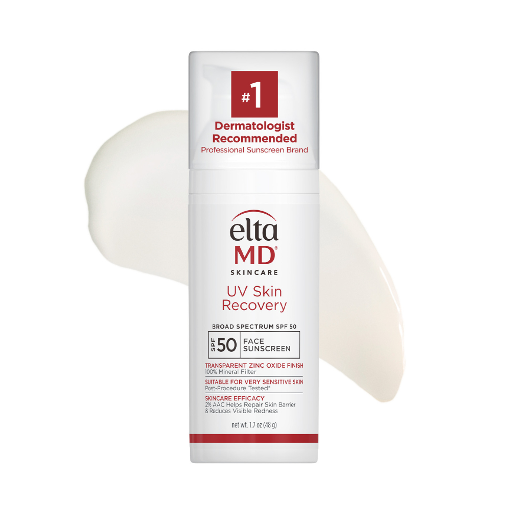 EltaMD UV Skin Recovery Broad Spectrum SPF 50 is a 100% mineral sunscreen powered by 2% AA Complex Barrier Repair Technology, designed to protect, recover, and strengthen sensitive skin, including skin prone to rosacea and post-procedure skin. This lightweight formula features zinc oxide for broad-spectrum UVA/UVB protection while helping to neutralize redness and reinforce the skin barrier.